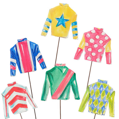 Celebrate the excitement of horse racing with these vibrant Jockey Silks Stakes. Featuring the iconic colorful patterns inspired by classic racing ...