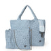- Hidden magnetic closure at top of tote