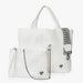 - Matching wristlet pouch with hand-strap, can be clipped inside tote