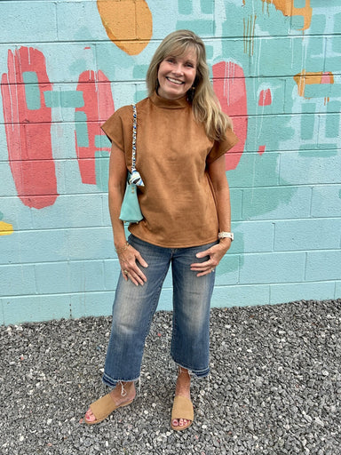 Discover the perfect wardrobe essential with this Faux Suede V-Neck Top. Wrapped in a buttery soft suede texture and rich tan shade, it's designed ...