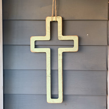 Bring a touch of faith and elegance into your home with this hand-painted ivory cross, adorned with delicate gold-colored beads. Crafted from paper...