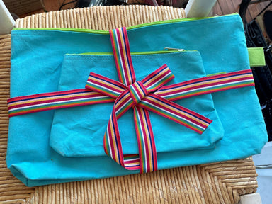 This Striped Canvas Bag/Clutch is a versatile accessory that can hold your cosmetics or toiletries. Its nautical-inspired stripes pattern adds a to...