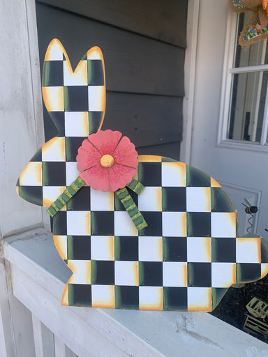 Easter Bunny linen tea towel with wooden button tail welcomes your guests for the Easter season.