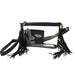 This security compliant crossbody features a Clear PVC body with gold hardware and fun fringe accents for a western attitude. The main zippered compartment is perfect for securely storing your personal items. The matching PU Leather strap complements this classic design.
