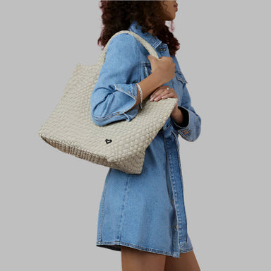 Discover the Vulcan Large Woven Tote—a hand-crafted, hand-woven neoprene bag that transforms your daily routine. Eye-catching fringe details at the...