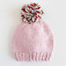Our Merry Hat is hand-knit, featuring a pink base and multicolored pom. This hat adds cheerful flare to your little one's winter wardrobe. Match with our Merry Sweater. - Designed in Salt Lake City. - Crafted with care.