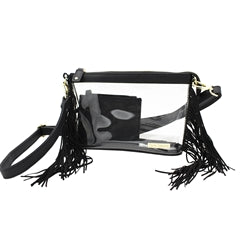 This security compliant crossbody features a Clear PVC body with gold hardware and fun fringe accents for a western attitude. The main zippered com...