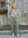 Carolee is wearing a small and paired them with our Floral Print Top With Puffed Sleeves. She is wearing a small in the top.