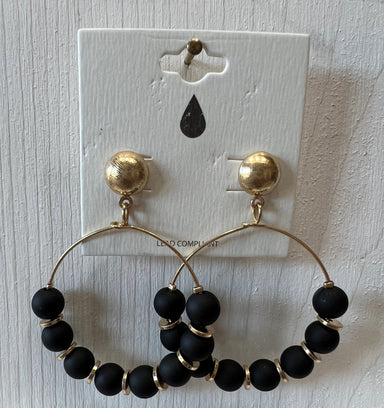 These black and gold earrings are a bit on the dressy side. They have a slightly marbled large round black hoop with a gold stud and top. These wi...