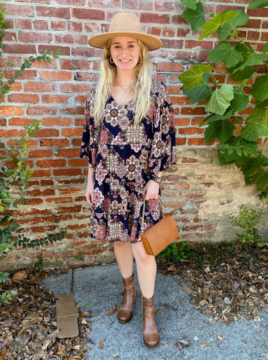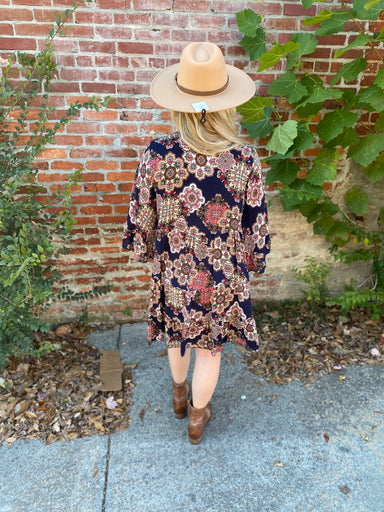 This adorable navy sleeveless dress features charming tie shoulder straps and playful contrasting ric rac trim along the neck and arms. Its versati...