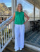 This versatile sleeveless top features a charming tie-gathered neckline and cinched waist for a flattering silhouette. Perfect for spring and summer occasions, it pairs effortlessly with jeans or casual pants for laid-back style. The soft rayon-polyester blend offers comfort and breathability. Ideal for St. Patrick's Day celebrations or everyday wear.