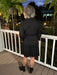 This black, collared dress offers a sophisticated look with its stylish front placket and snap-up design. Featuring mid-length sleeves, a flattering sash belt, and a tiered skirt, it can be worn for work or play!