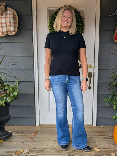 The perfect wardrobe essential, this soft knit sweater top delivers effortless style in a timeless black hue. Designed for versatility, its lightwe...