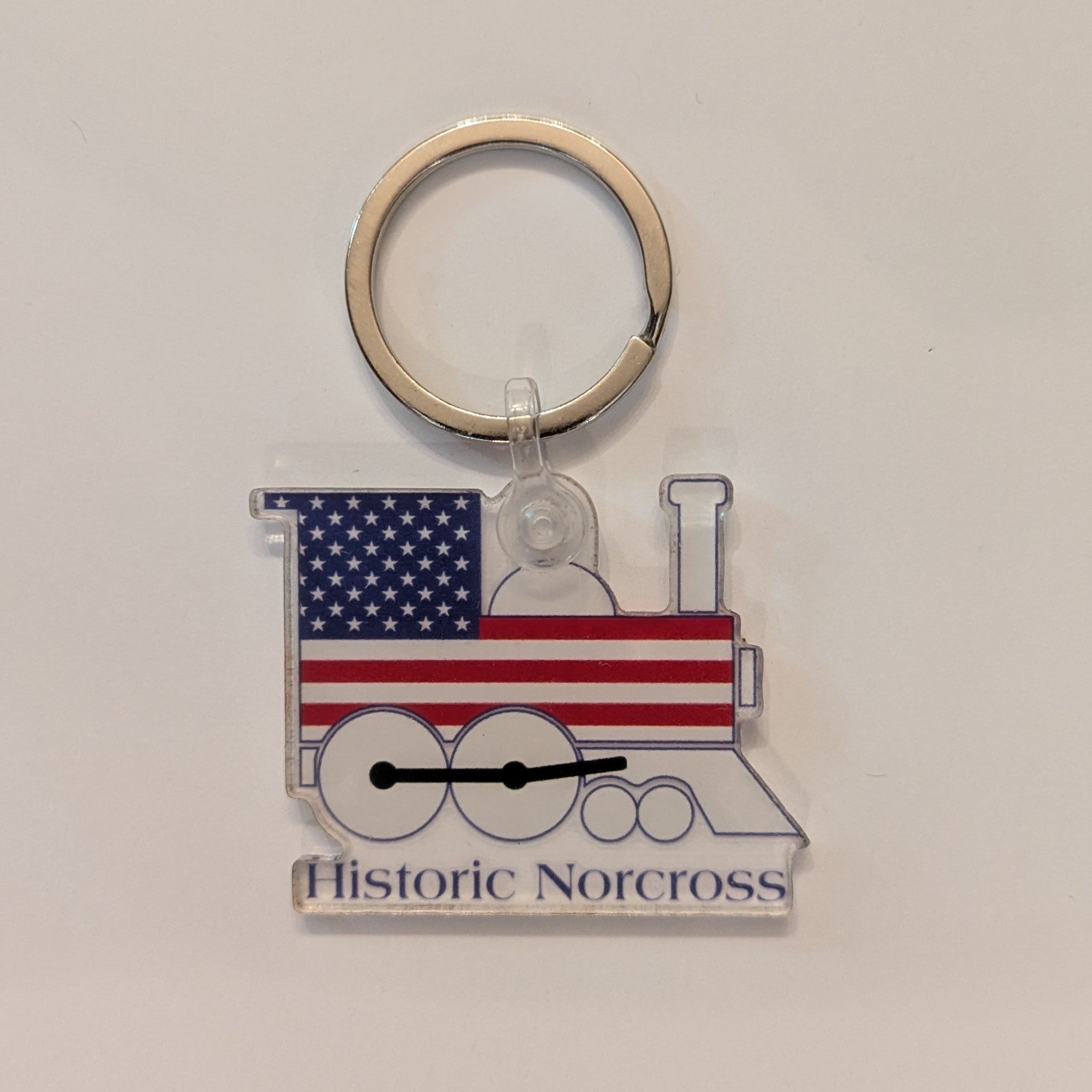 Experience the charm of historic Norcross with our train-inspired key chain! A unique and practical souvenir, supporting your city while adding a touch of nostalgia to your daily routine.